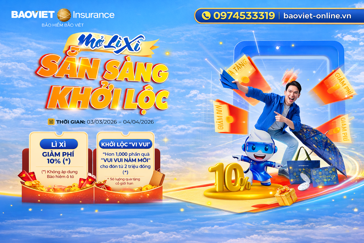 Nhằm thu hút khách hàng tham gia bảo hiểm ngay sau dịp tết và gia tăng độ nhận diện thương hiệu Bảo Việt, Tổng Công ty Bảo hiểm Bảo Việt triển khai chương trình khuyến mại, mời các bạn cùng tham khảo nhé.